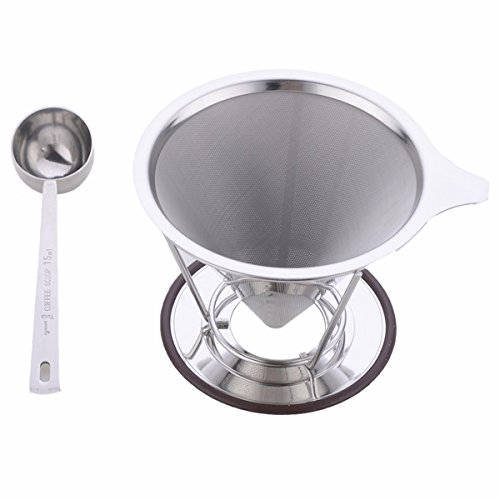 Ziselu Stainless Steel Pour Over Coffee Maker, Filter Cone and Holder, Micro Filter Coffee Dripper and Coffee Scoop