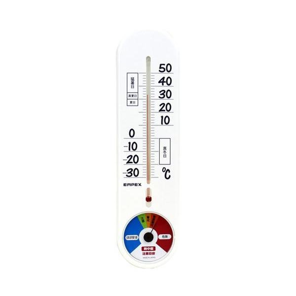 | 年間を通して役立つガラス管温度計です。温度計には「夏日」「真夏日」「猛暑日」「真冬日」ゾーン付。5段階の熱中症目安表示は高温多湿になることで注意目安レベルが上がります。電池不要のアナログ式!! |
