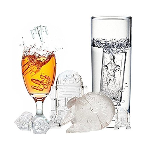 Studio : KINGZHUO Publisher : KINGZHUO Product Description Feature: 100% Brand New and High Quality Material : BPA FREE Silicone Style : Han Solo, R2-D2, Darth Vader, X-Wing Fighter, Millennium Falcon, Yoda Size : 14.5*10.5*1.5 cm Working temperature:-70°C - 280°C Specifications: Material: food grade silicone Features: drinks, dotted with ice and chilled food fun. For products: ice pudding, biscuits cakes, mousse jelly, prepared foods, chocolate, etc. can be used. Scope: oven, microwave, refrigerator and so on. Package Included: 1 x Ice Mold 0