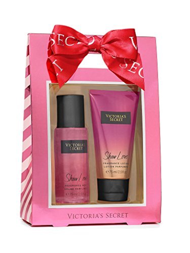 -. Binding : Misc. -. Brand : Victoria's Secret - Gift Sets -. Feature : Features both a Victoria's Secret Fragrance Lotion and Fragrance Mist / Gifts that will impress anyone / Packaging varies in accent style, but the products inside will always be the same. / Both the lotion and mist are 2.5fl oz. -. IsAdultProduct : 0 -. Label : Victorias Secret -. Manufacturer : Victorias Secret -. MPN : Sheer Love 2 PC Set -. PackageQuantity : 2 -. PartNumber : Sheer Love 2 PC Set -. ProductGroup : Beauty -. ProductTypeName : BEAUTY -. Publisher : Victorias Secret -. Studio : Victorias Secret -. Title : Victoria's Secret 2.5 Fl Oz Fragrance Mist & Lotion Gift Set - Packaging Varies Slightly