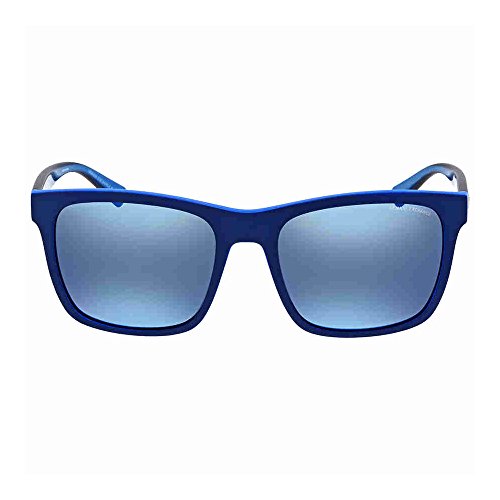 Men's squared acetate frame in electric blue. Blue mirror blue lenses for enhanced sun protection. 100% UV protection.