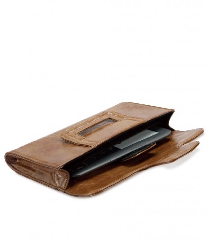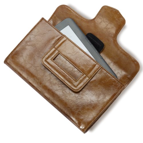 -. Feature : Elegant faux leather (100% polyurethane) combination Kindle cover case and clutch purse - Available in Peacock Green, Honey Brown, Ruby Red and Sunshine Yellow / 9.5" (w) x 6" (h) x 1.5" (d) - Fits the Kindle, Kindle Paperwhite, Kindle Touch, Kindle Keyboard and Kindle Voyage / Padded compartment for the Kindle with velcroed tab closure + additional compartment for essentials / Tab closure with hidden magnetic snap and exterior slip pocket / Great gift idea for the Kindle lovers in your life; Amazon P.R.Ime eligible