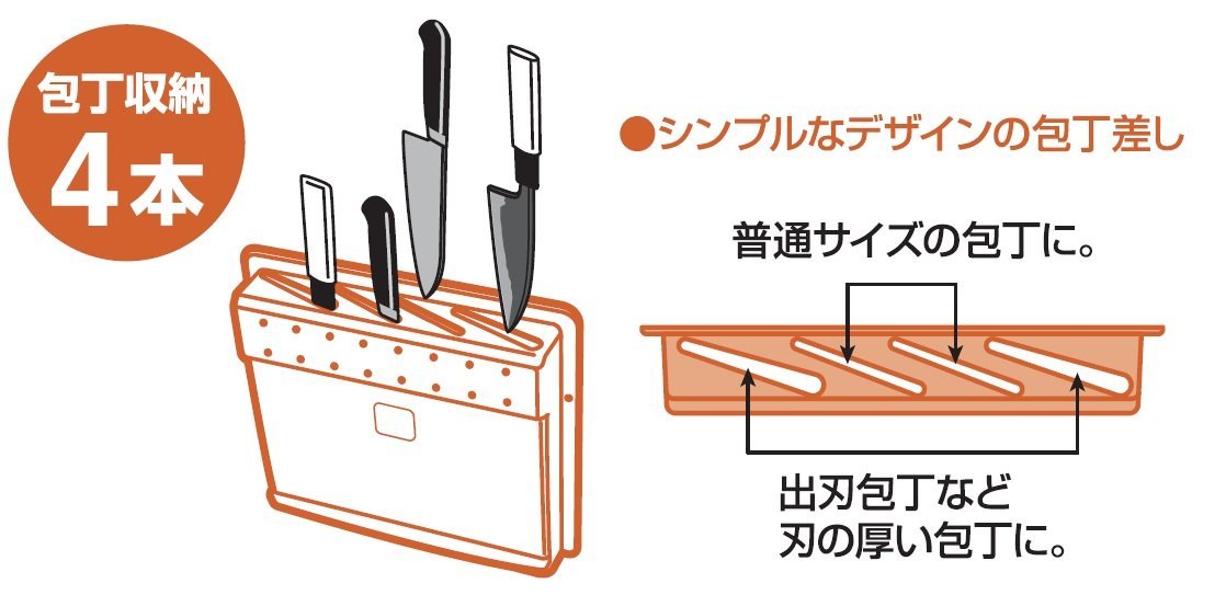 Not only ordinary size knives but also thick knives like blades knives can be stored