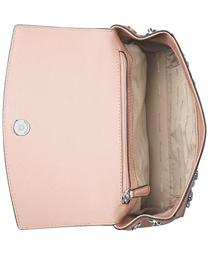 -. Binding : Apparel -. Brand : MICHAEL -. Color : Ballet -. EAN : 0190049686720 -. Feature : Saffiano leather / Jewels adorn the front panel of bag / op flap with snap closure. Single top handle. Removable, adjustable shoulder strap. / Strap Length: 51 in Strap Drop: 24 1⁄2 in Handle Length: 10 in Handle Drop: 3 1⁄2 in / Measurements: Bottom Width: 9 1⁄2 in Depth: 3 1⁄4 in Height: 6 3⁄4 in -. MPN : 30F6TAVS1O-857 -. PackageQuantity : 1 -. PartNumber : 30F6TAVS1O-857 -. ProductGroup : Apparel -. ProductTypeName : BAG -. Size : Small -. Title : MICHAEL Ava Jewel Small Top Handle Satchel -. UPC : 190049686720