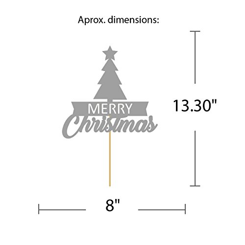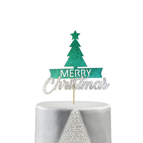 Cake Topper Decoration Happy Christmas Glitter cardstock Silver and Green 8 X 13.30 inches