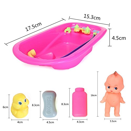 -. Binding : Toy -. Brand : D&B Fun Toys -. Color : Red -. EAN : 0802955851399 -. Feature : This lovely little kit play set is novel and attractive toy for children. With high lation cute design, children can get a lot of entertainment and learn at the same time. / High lation baby doll & bath tub kit toy for kids. This bath kit role play set is great gift for your kids. / Complete medical kit satisfies children's need of role playing. / Kids can get a lot of entertainment and learn at the same time. / It includes: bath tub with "water sprayer", baby doll, soap, ducky or shampoo. -. IsAdultProduct : 0 -. Label : China -. Manufacturer : China -. ProductGroup : Toy -. ProductTypeName : TOYS_AND_GAMES -. Publisher : China -. Studio : China -. Title : New Baby Doll in Bath Tub With Duck Bathroom Shower Accessories Set Kids Pretend Role Play Toy -. UPC : 802955851399