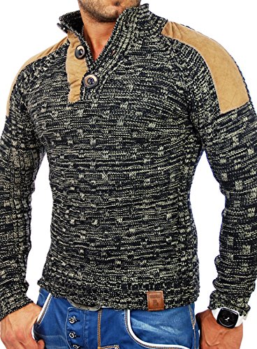 Tazzio TZ-3570 Herren Winterpullover / Grobstrick-Pullover, mit Aufnahern
