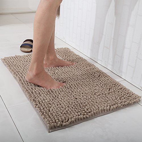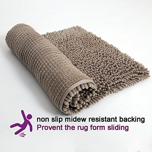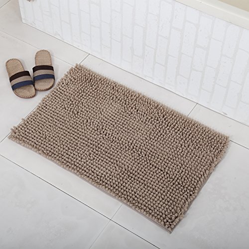 [CHENILLE UPDATE]Chenille Bath Rug For Bathroom Anti Slip Mat For Bathtub Water Absorbent Mat Linen Color