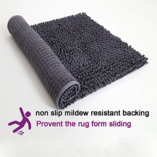 Absorbent Bath Mats for Tub BPA Free Non - Slip Grey Bath Mat for Bathroom Floor Extra Long, Noodle Bath Rug Machine Washable 31.5"x19.6"