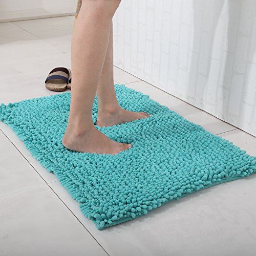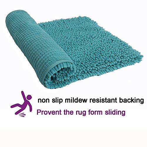 Bath Mats Non Skid for Tub for Kids Mildew Resistant Microfiber, Noodle Bathroom Rugs Blue Machine Washable 31.5"x19.6"