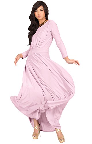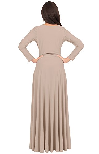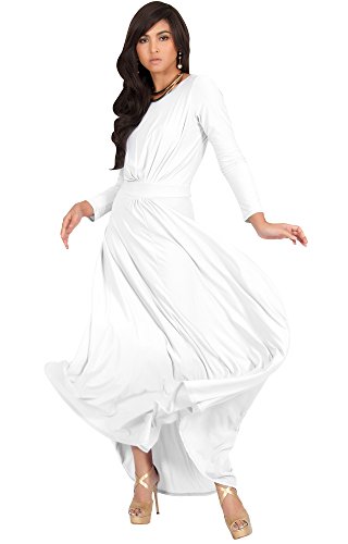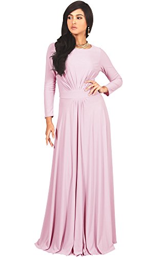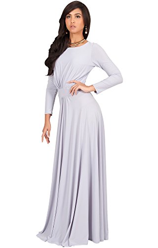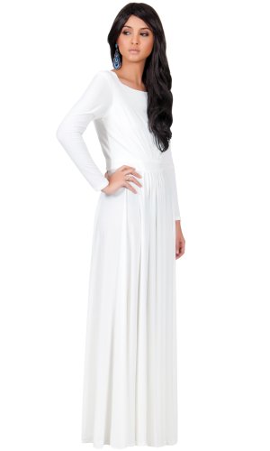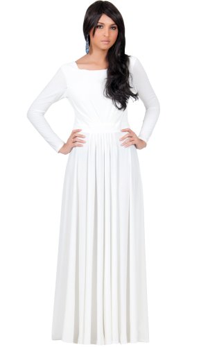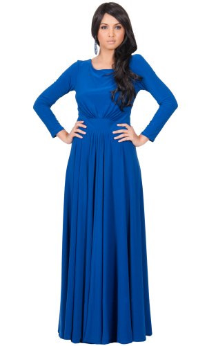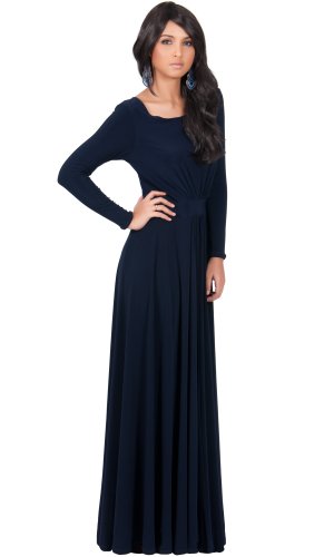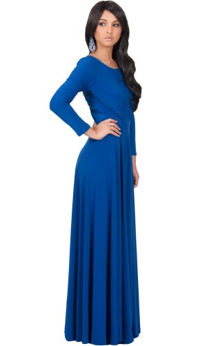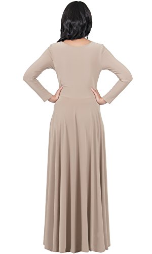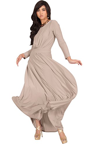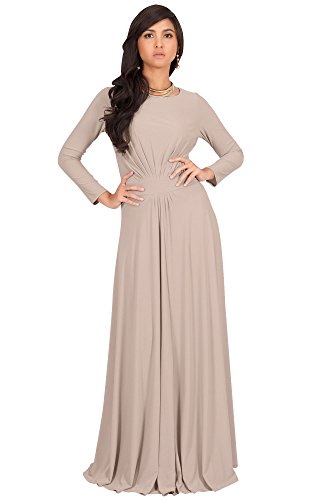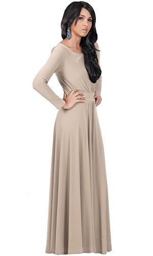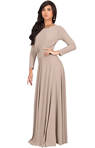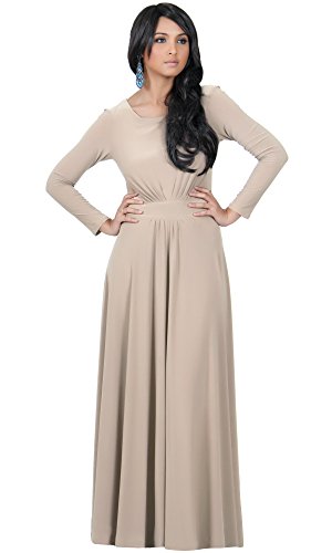 Binding : Apparel Product Description A very elegant designer maxi dress with sleeves from Koh Koh that features a scoop neck, full length sleeves, an empire waist and a flowy skirt. It really is a beautiful maxi dress, highly versatile and perfect for every occasion. The perfect fall maxi dresses or winter maxi dresses, a lovely modest maxi dress that is well suited for formal maxi dress events. These versatile maxi dresses are available in color Light Brown and Petite Size Extra Small / XS / 2-4.