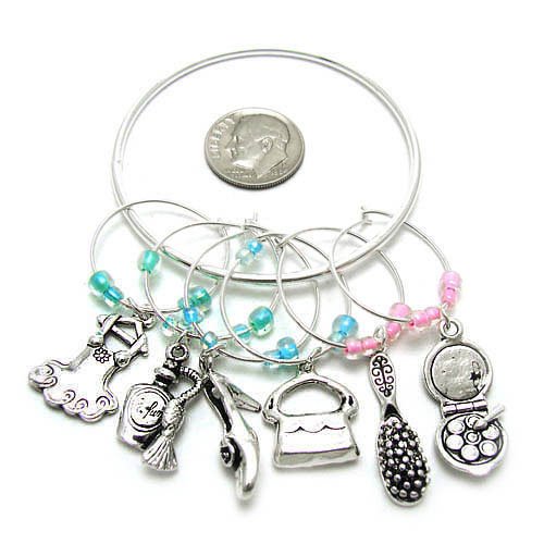 -. Title : Wine Charms ~ Hair Brush, Mirror, Shoe Girly Accessories Wine Glass Charms Set of 6 (Style Wine Charm 078 20)