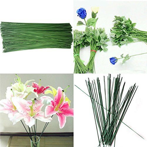 50 Pcs 2# Green Floral Tape Iron Paper Wrapped Wire Artificial Flower Stub Stem Handmade DIY Craft 16 Inches/40cm