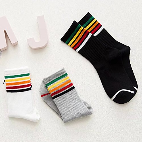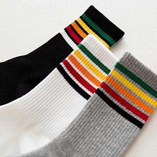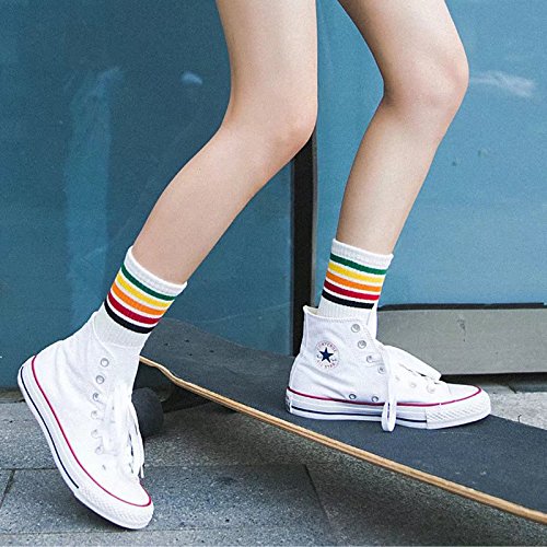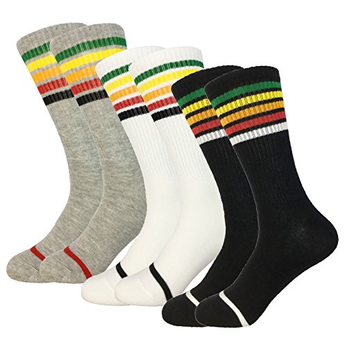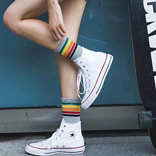 -. Feature : Women Argyle Dress socks Material: Cotton/Polyester/Spandex; Elastic Machine wash, wash without softeners / Funny Crew Socks Size: One size for all, Women size US 6-11, Men size US 6-9; / Rainbow Stripe Crew socks Color: Black with rainbow Stripe ;white with rainbow Stripe; Grey with rainbow Stripe / Sport Argyle Socks Package: 3 pack in one bags With Thanks cards / Perfect for keeping your favorites and gifting some too,Athletic Socks for girls , so beautiful, best gift for Christmas, Thanksgiving.