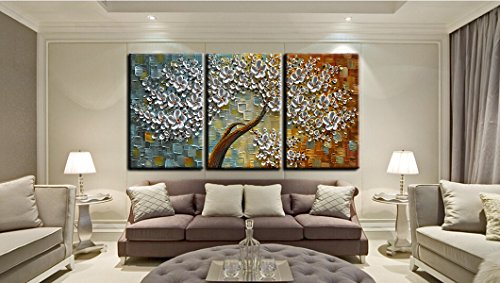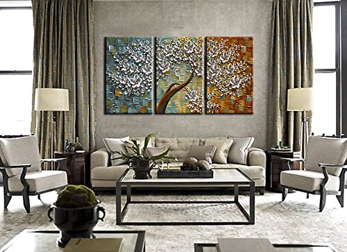 Stretched and Framed decorative canvas oil paintings set for home decorations wall decor, each panel has a black hook already mounted on the wooden bar for easy hanging out of box.