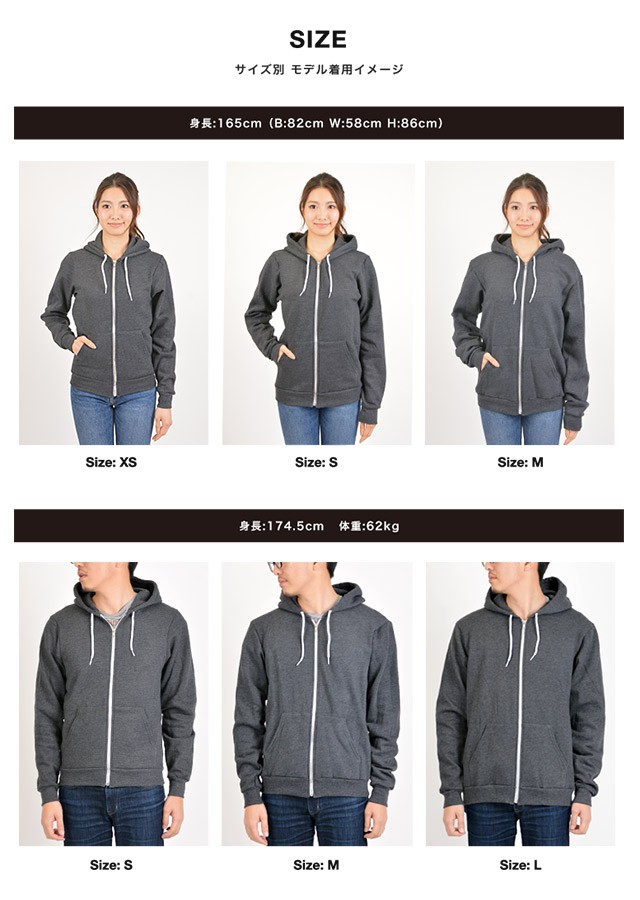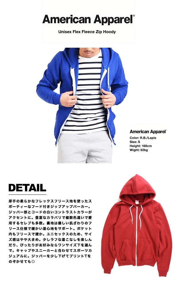| 商品名 | American Apparel アメリカンアパレル アメアパ パーカー 裏起毛 F497 Unisex Flex Fleece Zip Hoody メンズ レディース NO.1 | ||