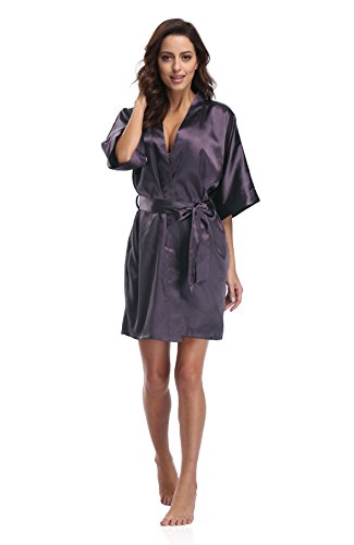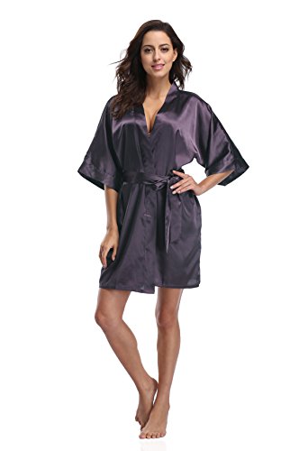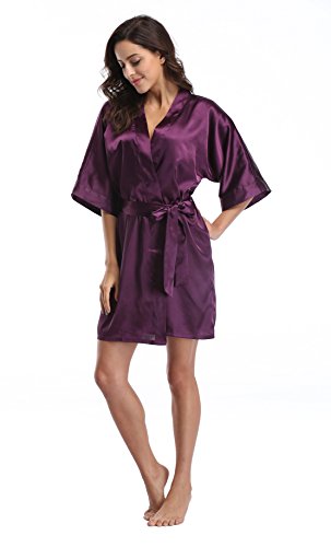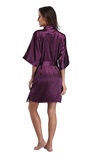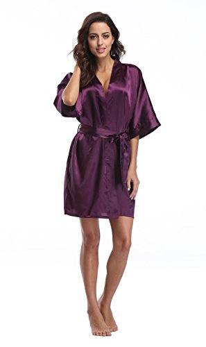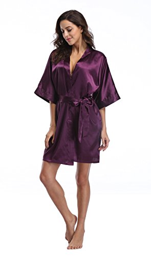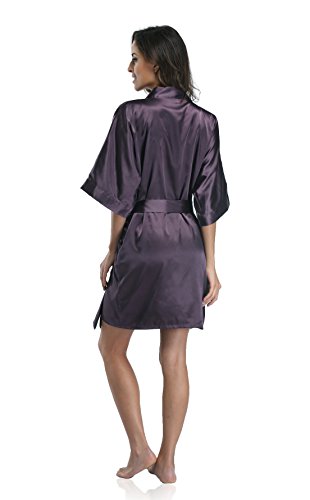 Luvrobes Women's Satin Kimono Robe, Solid Color, Short (M, Plum)