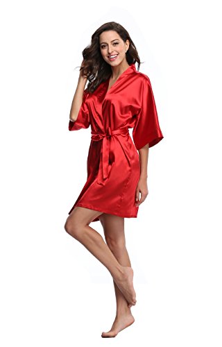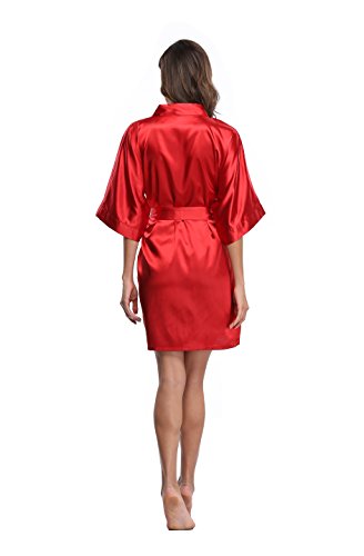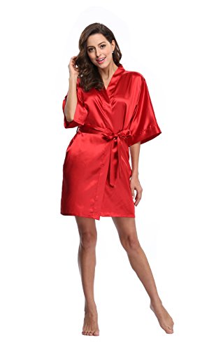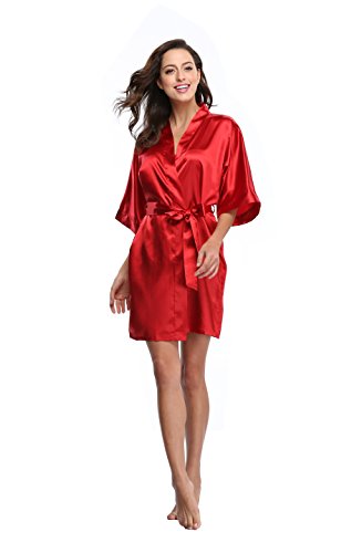 Luvrobes Women's Satin Kimono Robe, Solid Color, Short (M, Burgundy)