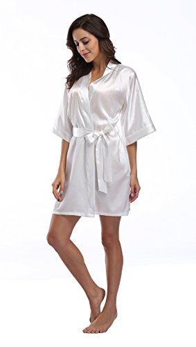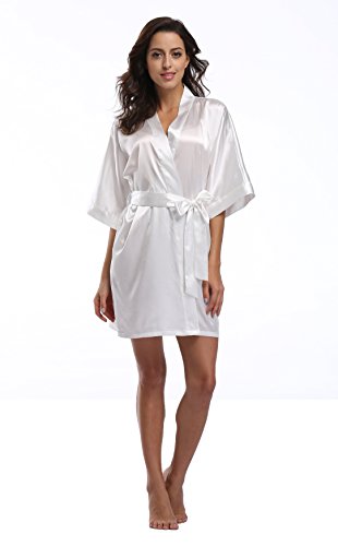 Luvrobes Women's Satin Kimono Robe, Solid Color, Short (M, White)