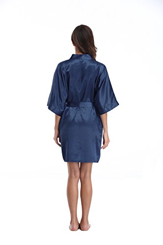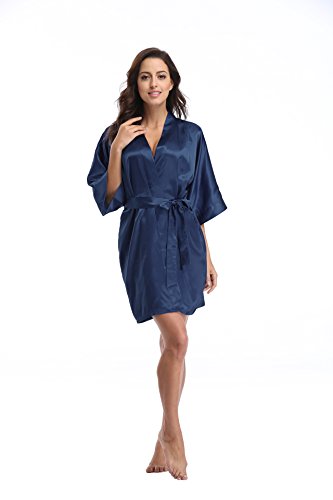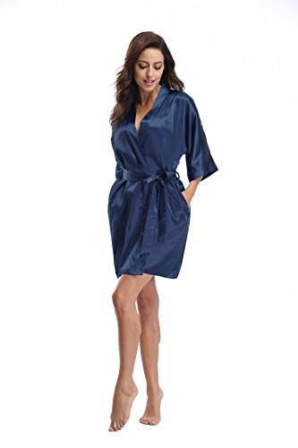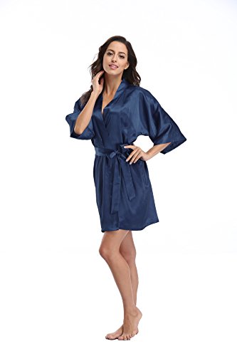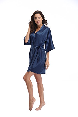 Luvrobes Women's Satin Kimono Robe, Solid Color, Short (M, Navy)