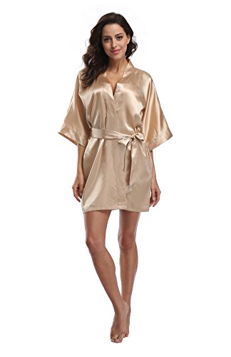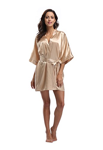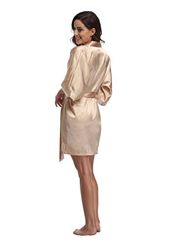 Luvrobes Women's Satin Kimono Robe, Solid Color, Short (M, Champagne Gold)