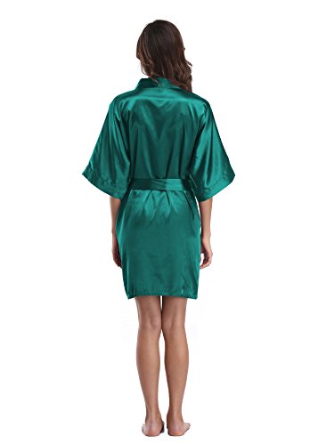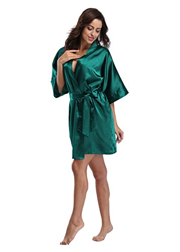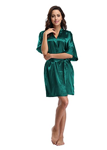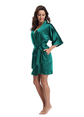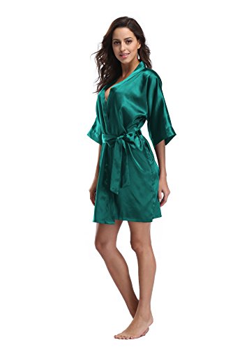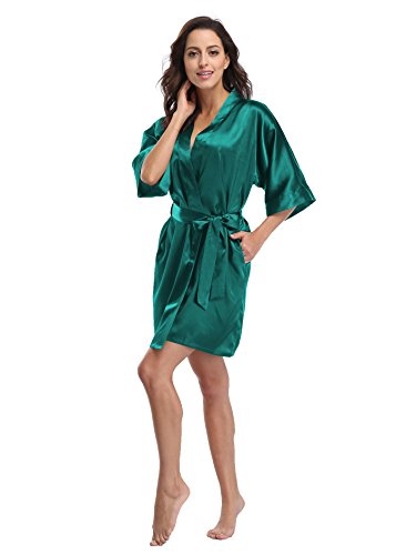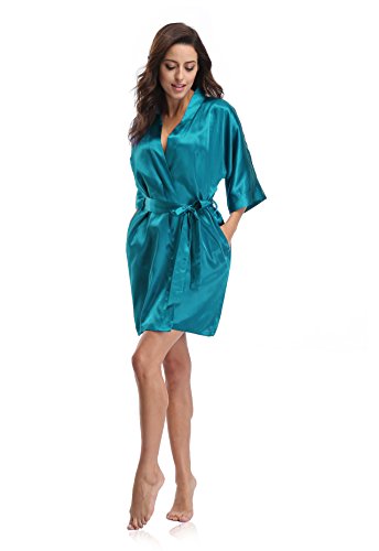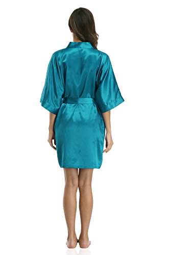 Luvrobes Women's Satin Kimono Robe, Solid Color, Short (S, Teal)