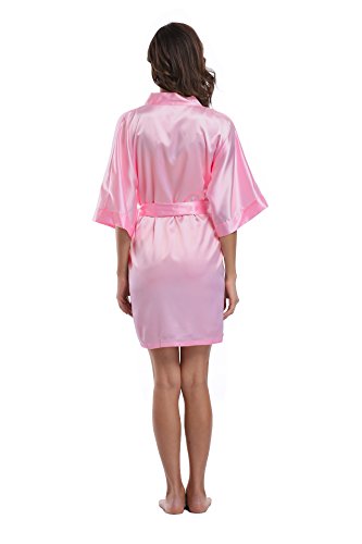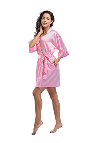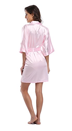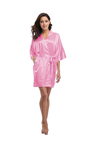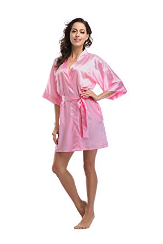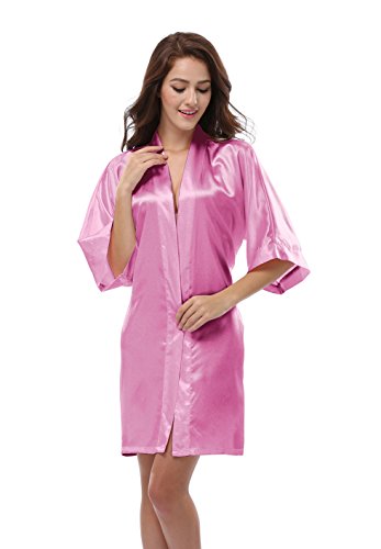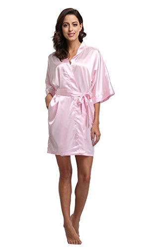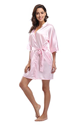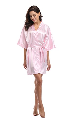 Luvrobes Women's Satin Kimono Robe, Solid Color, Short (M, Light Pink)
