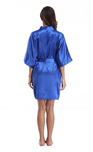 Luvrobes Women's Satin Kimono Robe, Solid Color, Short (M, Sapphire)