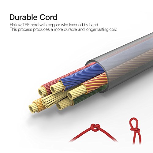[Durable Cord]: The 3.9 feet hollow TPE cord with durable oxygen-free copper wire inserted by hand, this process produces a more durable and longer lasting cord. The 3.5mm gold plated jack on the end for reliable connectivity.