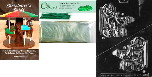 Cybrtrayd 3D Santa on Cycle Chocolate Mold with Chocolatier's Bundle of 25 Cello Bags, 25 Green Twist Ties and Chocolatier's Guide