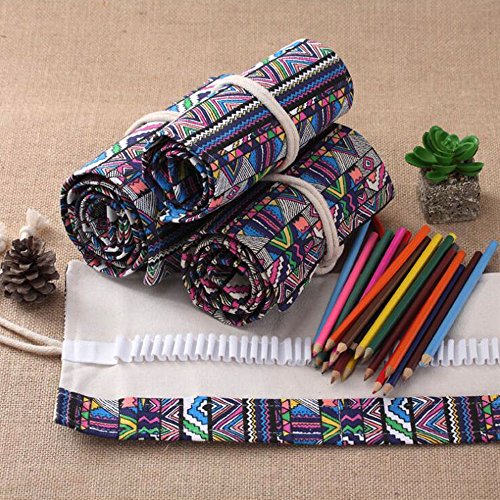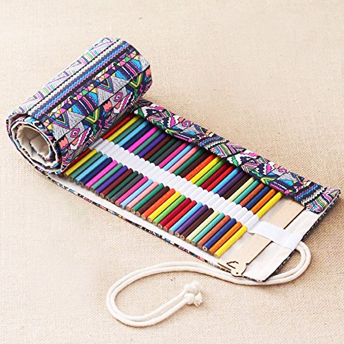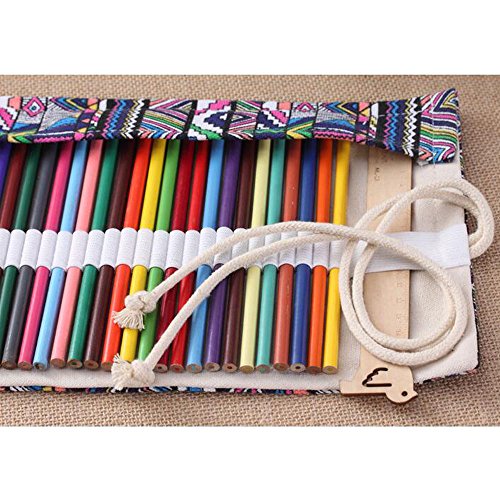 LIFEMATE Canvas Pencil Wrap, 72 Colored Pencil Roll Up Travel Drawing Coloring Pencil Holder --Ethnic Pattern (Pencils are not Included)