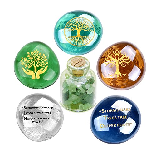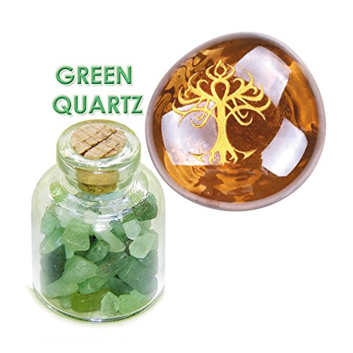 Tree of Life Faith Wisdom and Encouragement Inspirational Amulets Glass Stones Green Quartz Bottle Set