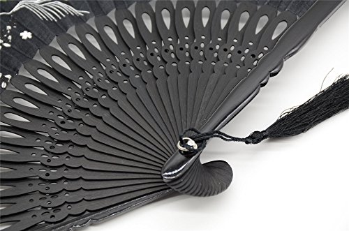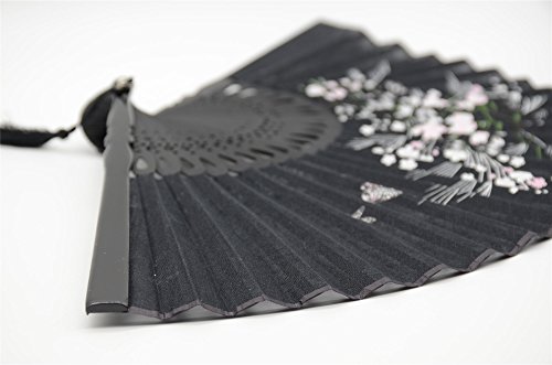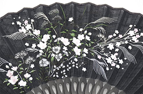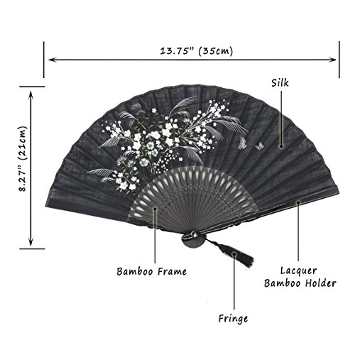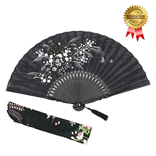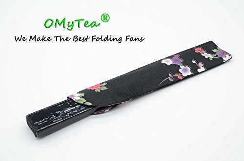 OMyTea "Grassflowers" 8.27"(21cm) Hand Held Folding Fans - With a Fabric Sleeve for Protection for Gifts - Chinese / Japanese Vintage Retro Style (Black)