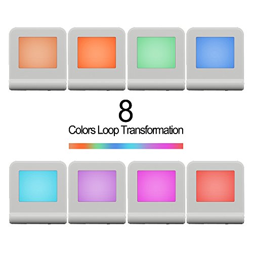 Multi-color LED kids night light features a slim profile and a cool-touch design for safety. Unit settings can be alternated between white and 8 different color options!