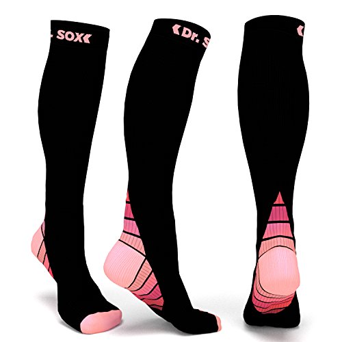 - WITH 20-30mmhg GRADUATED COMPRESSION – You’ll want to get multiple pairs and show them off! Lots of room for your heel and toes in the soft & light material. Machine wash & tumble dry on low. Women and men will love the fun and stylish black & pink pattern! Gold grade and designed in the USA