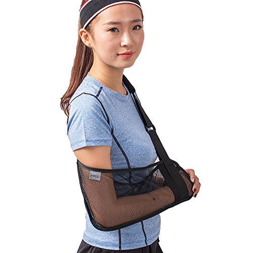 Cool Mesh Arm Sling Medical Shoulder Immobilizer Rotator Cuff Wrist Elbow Forearm Support Brace Strap Lightweight Breathable Simple Black for Broken&Fractured Arm