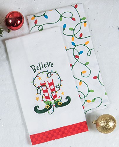 Kay Dee Designs H2729 Deck the Halls Believe Elf Feet Tangled Lights Tea Towel Set, 2 Piece