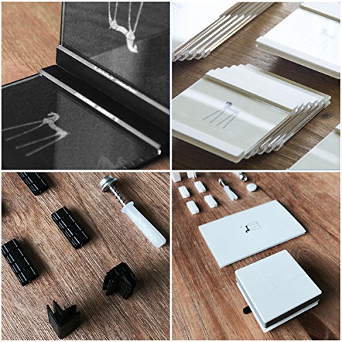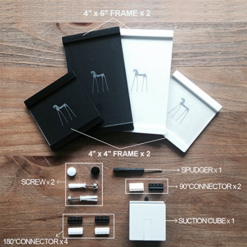 -. Feature : This amazing picture frames let you create thousands of different layouts using only 4 orginal picture frames. New layout designs will only be limited by your imagination and creativity / Made of high quality acrylic transparent leather, our frames are made to last for long and bring a touch of luxurious and sophisticated modern DIY design to you home decors and photos settings / Installation: No need to detach frame off the wall to fix pictures in, all it takes is just 2 holes for nails or suction cube to mount this picture frame on smooth and rough surface such as walls, glass, ceramic tile, it also comes with connectors which makes it easy to connect the picture frames neatly together, making it user friendly / Package includes: Two 4x4 picture frames, Two 4x6 picture frames, Four 180 degree connectors, Two 90 degrees connectors, 1 Spudger, 2 Screws and 1 Suction Mount / Our Picture frames are perfect to use as family pictures, baby pictures, friends, pets pictures, wedding picture frames and more. We guarantee a high quality product and in case of a return, no question asked.