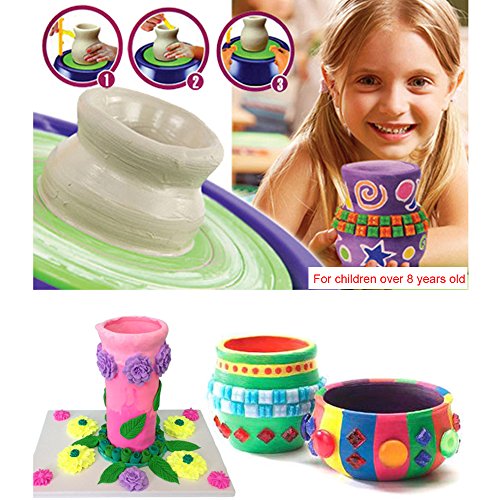 Educational Toy, Kids can make their own creative clay pots by hands. Also it requires 2 batteries -not included, then you can choose 2 different speeds to play.