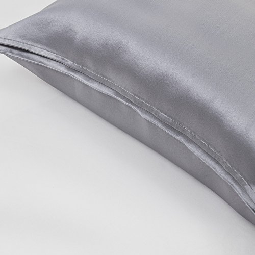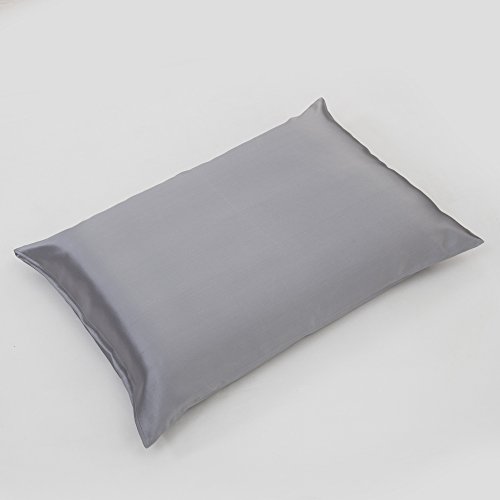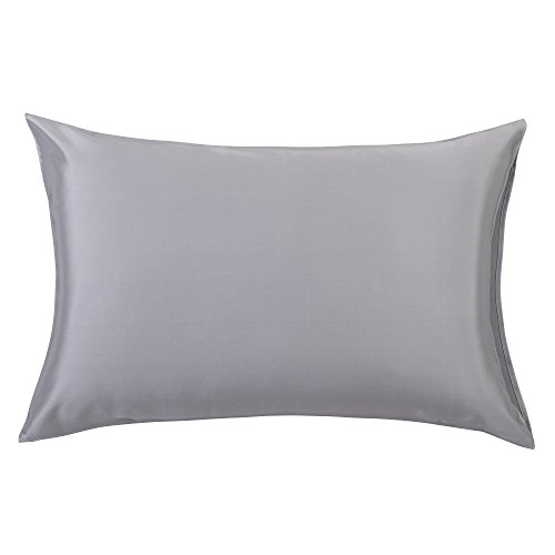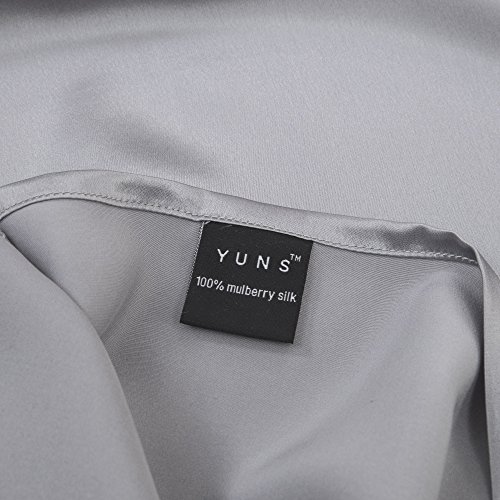 YUNS Luxury 100% Pure Mulberry Silk Pillowcase for Hair and Skin Beauty, 25 Momme Silk Both Sides, Deep Envelope Closure, Queen 20x30inch, Silver Grey.