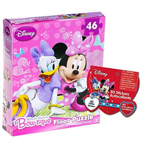 -. Feature : Disney Minnie Mouse Clubhouse Floor Puzzle for Kids. Giant Minnie Mouse floor puzzle fun for todders and kids. / The Disney Minnie Mouse giant floor puzzle measures 3 feet by 2 feet -- big fun for little ones. Features Minnie Mouse! / This Minnie Mouse puzzle for kids and toddlers includes 46 large pieces and can be assembled on the floor or on a large table. / Includes a Disney Minnie Mouse sticker pack with 80 stickers. Works great for Disney Minnie Mouse birthday parties and party supplies. / The perfect gift for any fan of Disney Minnie Mouse Clubhouse toys and games!