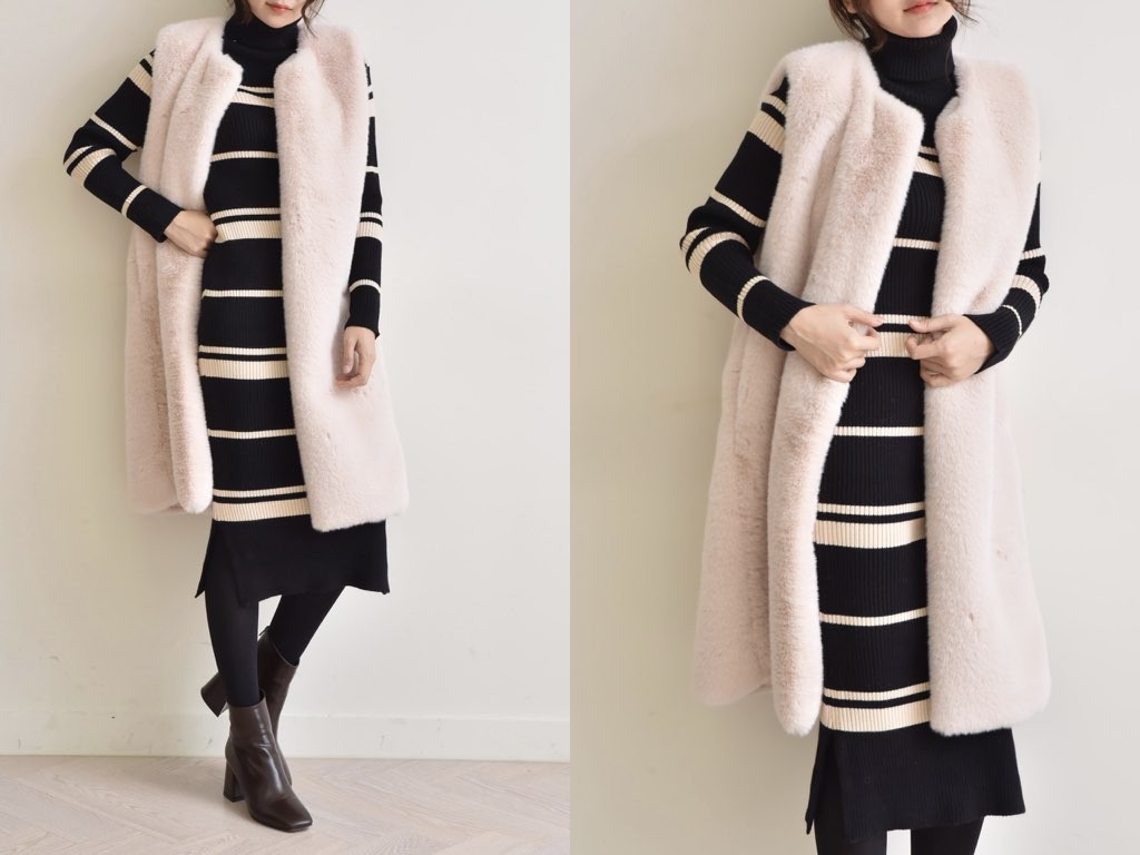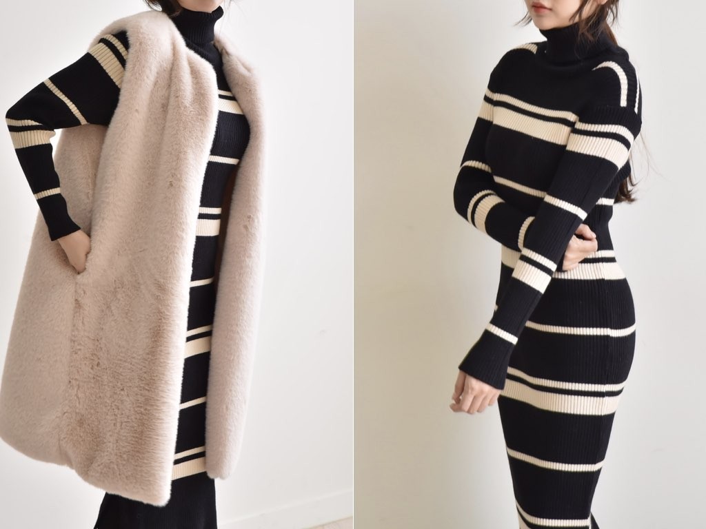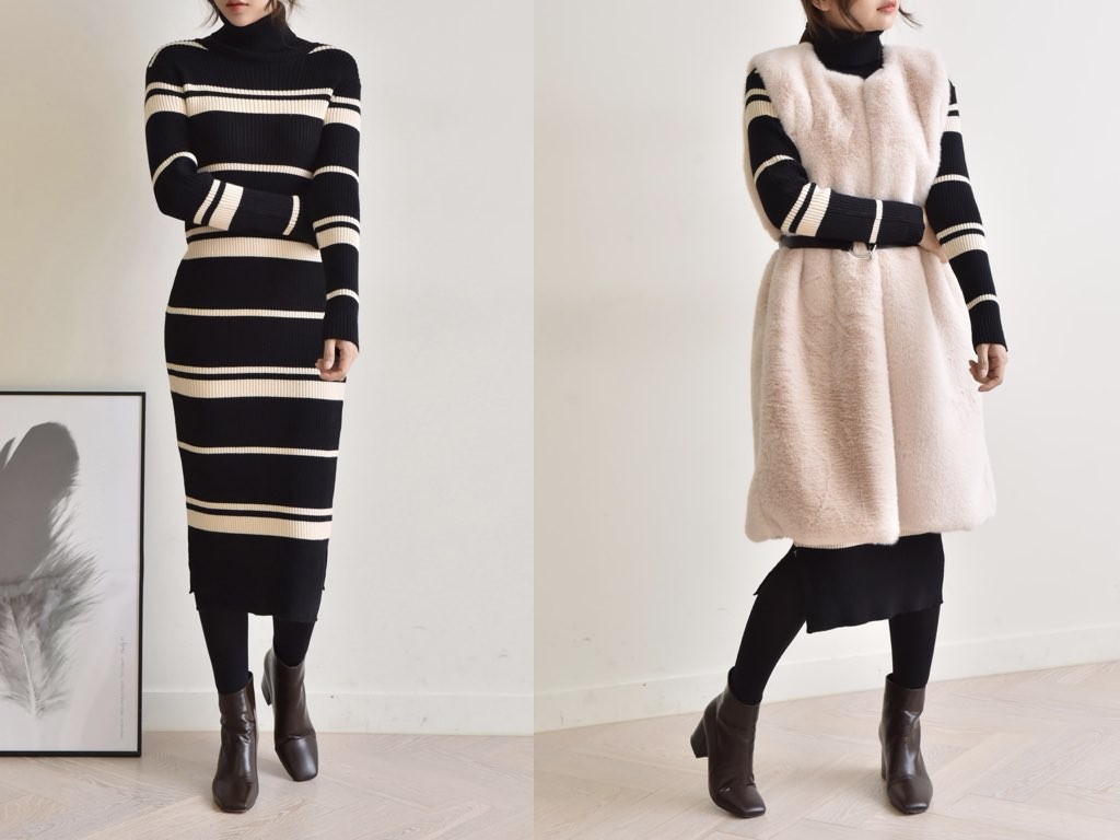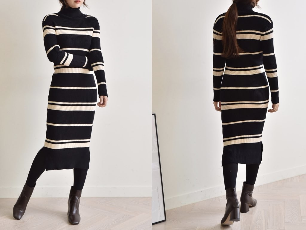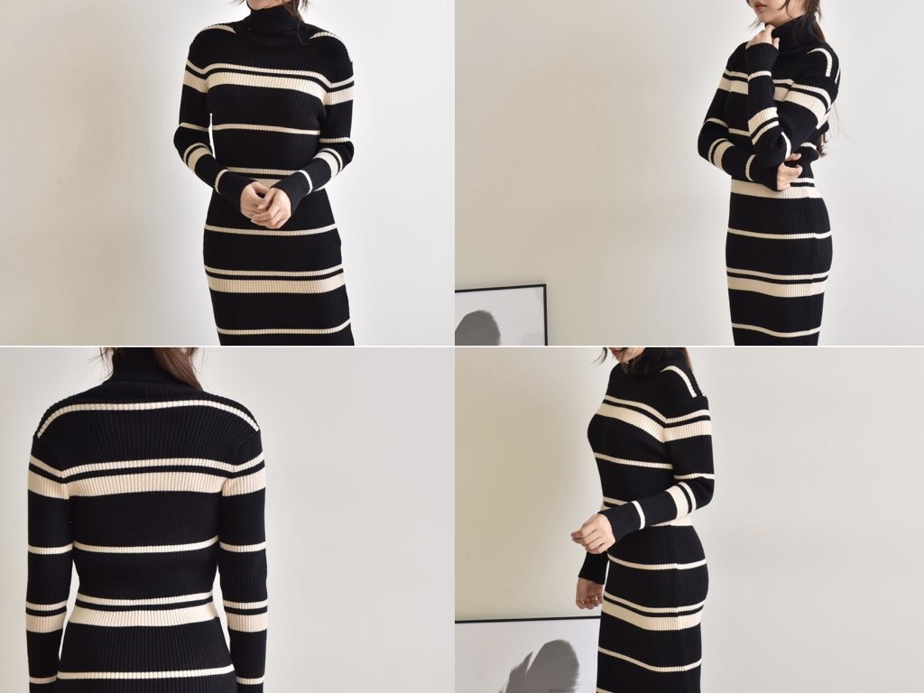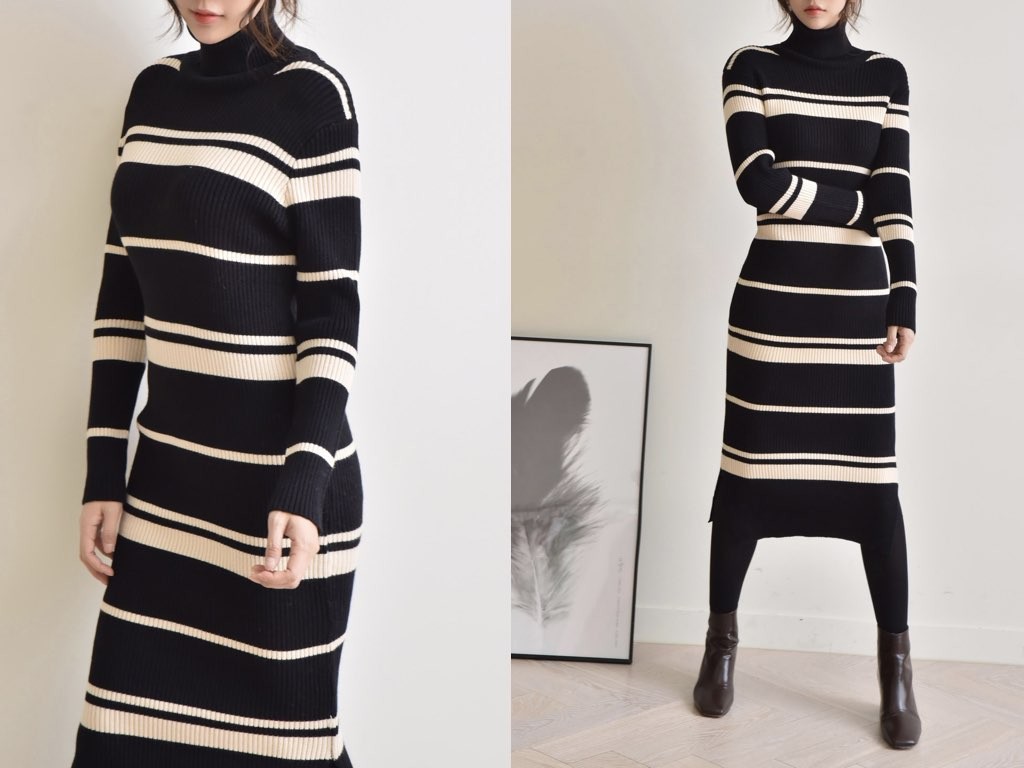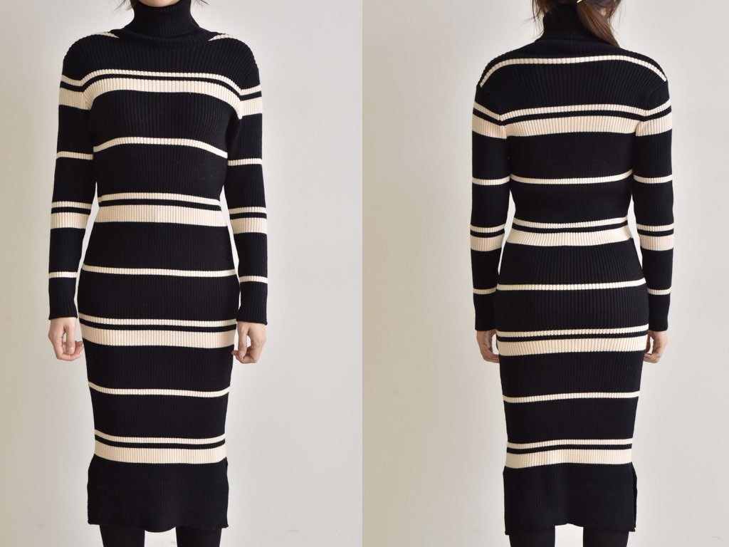 タートルネックのニット・ロングワンピースです。1枚で着れて楽チンなのに、女性らしさも感じられるアイテムの「ワンピース」。ボトムスやレギンスなどを合わせたレイヤードスタイルも素敵ですね。商品は、とても丁寧なつくりとなっています。1.基本情報色:2色展開(アイボリー/ブラック)サイズ:Free素材:レーヨン35%、ポリエステル55%、ウール10%製造国:Korea2.サイズ情報肩幅:39cm身幅(胸断面):40cm腕の長さ:53cm着丈(前):111cm(サイズは計る方法に応じて±2〜3cmの誤差があります。ご了承お願い致します)モデル着用サイズ:F※着用モデル(163cm、体重47kg、足のサイズ24.5cm)3.その他の情報厚み:中間透け感:なし伸縮性:中間裏地:なし洗濯方法:ドライ(クリーニング)[注意事項]お取り寄せ商品は、海外より仕入れるため納品まで約10日前後いただきます。また店舗でも販売しており、在庫切れになる場合もございます。ご了承お願い致します。