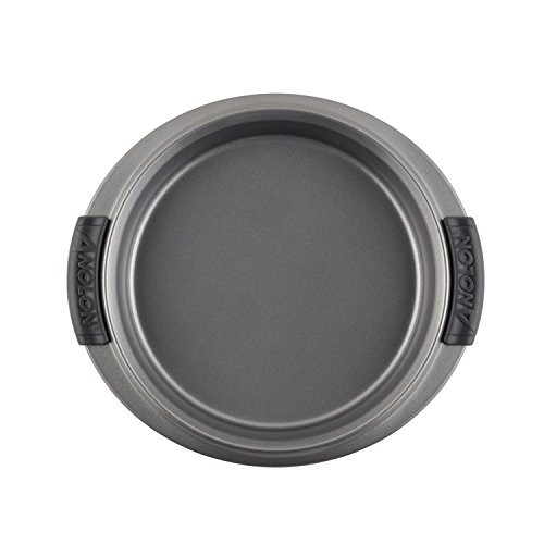 Anolon Advanced Bakeware is designed to make baking easier and more efficient, while measuring up to the high standards of serious bakers. Constructed of heavy gauge carbon steel, in a medium color tone that aids in even browning, this five-piece set resists warping and provides the even heat distribution that is so critical for successful baking results. The durable nonstick surface provides optimum food release for elegant presentation of holiday cookies and makes cleaning up easy. The wide rim with Anolon SureGrip silicone handles affords ample space for a comfortable grasp. This bakeware can be cleaned in the dishwasher for extra convenience.