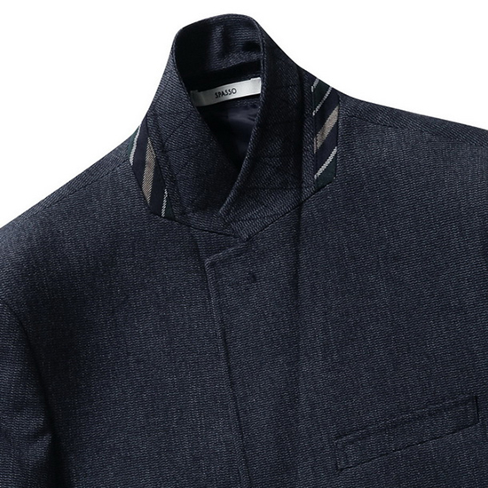 - 믹스 조직 텍스쳐 디자인의 모던한 남성 자켓.