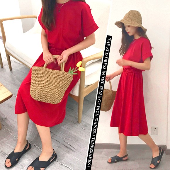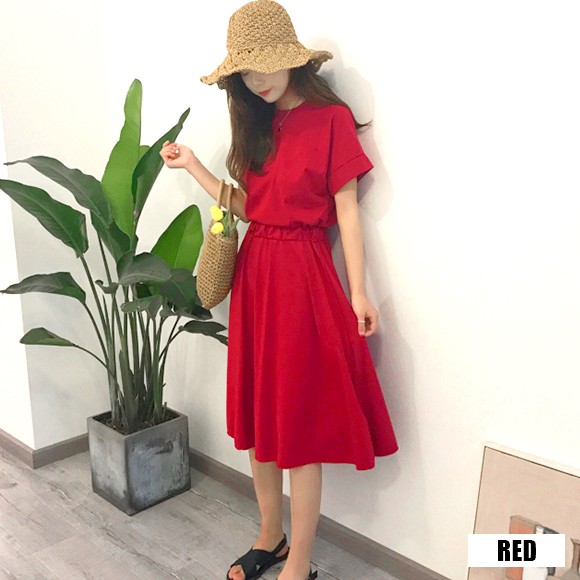 ◆商品紹介◆たっぷり広がるフレアでゆったり着られるTシャツワンピ。ひざ下丈なので、カジュアルすぎず程よいラフ感が楽しめます♪◆素材感・サイズ感◆コットンTシャツの優しい肌触りです。[素 材]綿・ポリエステル[伸 縮]なし(ウエストのギャザー部分のみあり)[透け感]なし[裏 地]なし◆モデル◆・身長161cm・フリーサイズ着用※お客様の体型や身長により写真のモデルとの着用感に多少の違いが出る場合がございます。◆サイズ◆※サイズ詳細は平置きで測った際のサイズとなっておりますので多少の誤差(約2-3cm)は予めご了承下さい。総丈:約108cm 肩幅:約19cm 袖幅:約20cm 袖丈:約25.5cm バスト:約90cm 袖口:約17cmウエスト:約60-70cm ※画像の色味はお使いのパソコンやスマートフォン等モニター環境により実際の色味とは若干異なる場合がございます。