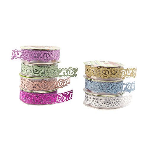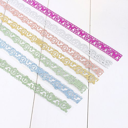 Lovely lace style tapes peel off the film and go ready to use. These lace tapes can be cut to your desired length and placed just about anywhere. Use these lace style tapes to jazz up a plain notebook, wrap cute packages, decorate a vase or clear container, and so much more