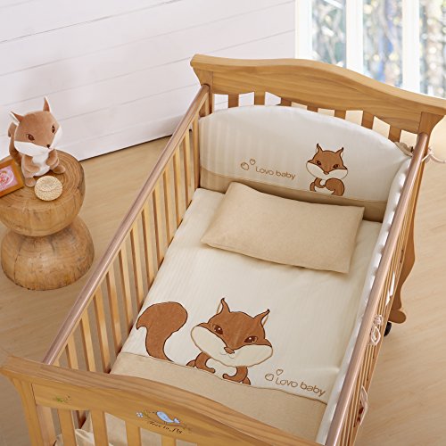 - Title : LOVO Baby Squirrel Henry Colored Cotton 3-Piece Crib Bedding Set without Bumpers