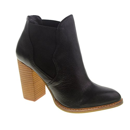 Seriously cool leather ankle boot. The Zane bootie features a stacked heel western-inspired stitching and side stretch panels. By Chinese Laundry.Leather 3 1/4" heel Color - BLACKFeature
