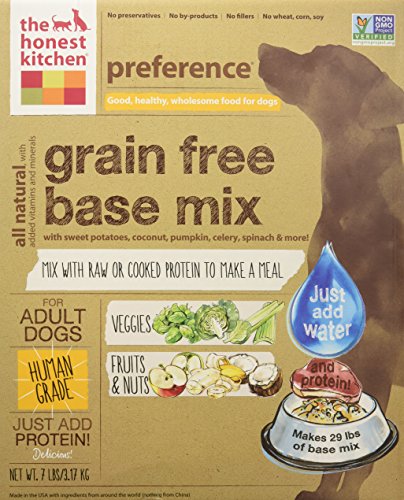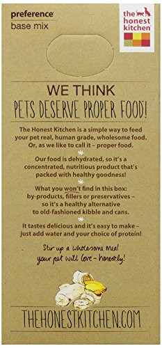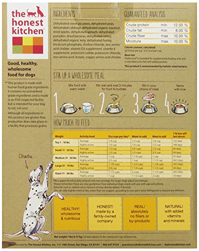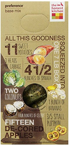 Preference is a grain-free base mix, which allows to customize your pet's diet with the meat of your choice. It's perfect for raw dog food feeders. Preference is intended for supplemental feeding only. This diet contains a custom vitamin-mineral premix with balanced calcium, phosphorus ratios, which are vital for the maintenance of healthy cells, bones and blood. Preference dehydrated raw dog food is the easiest way to make a homemade dog food. As a grain-free dog food foundation diet, meat must be added with every feeding. The beauty of Preference is that you can add whichever meat you would like, so it's an excellent option for dogs that can't tolerate common protein sources or who just like a little variety. Suitable for dogs of all ages including pups and seniors, with the addition of meat. Preference is 100 percent human-grade, made in the USA, and contains no red flag pet food ingredients like corn, soy, rice, beet pulp or wheat. Ingredients are dehydrated sweet potatoes, organic alfalfa, cabbage, celery, apples, spinach, organic kelp, coconut, bananas, pumpkin, honey, tricalcium phosphate, choline chloride, zinc amino acid chelate, vitamin D3 supplement, vitamin E supplement, potassium iodide, potassium chloride, iron amino acid chelate, copper amino acid chelate. Contains minimum 12 percent crude protein, minimum 6.0 percent crude fat, maximum 10 percent crude fiber, maximum 10 percent moisture, minimum 1.51 percent and max 1.60 percent calcium, minimum 0.64 percent and maximum 0.68 percent phosphorus, 333 calories per cup.Feature