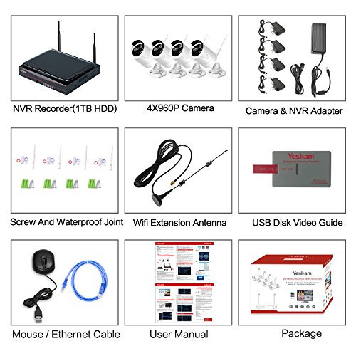 【3 years quality warranty】CE FCC UL Certificate adapters,3 years warranty and 60 days refund guarantee for yeskam product. 960P 1.3 megapixel cameras get into the details with stunning high definition video. It is about more 30% clear than 720P wireless video system. New Generation 3 Strong IR Leds offer crystal clear night vision distance up to 100ft to protect your property,Waterproof IP66 metal case of camera to install outside for indoor and outdoor home surveillance